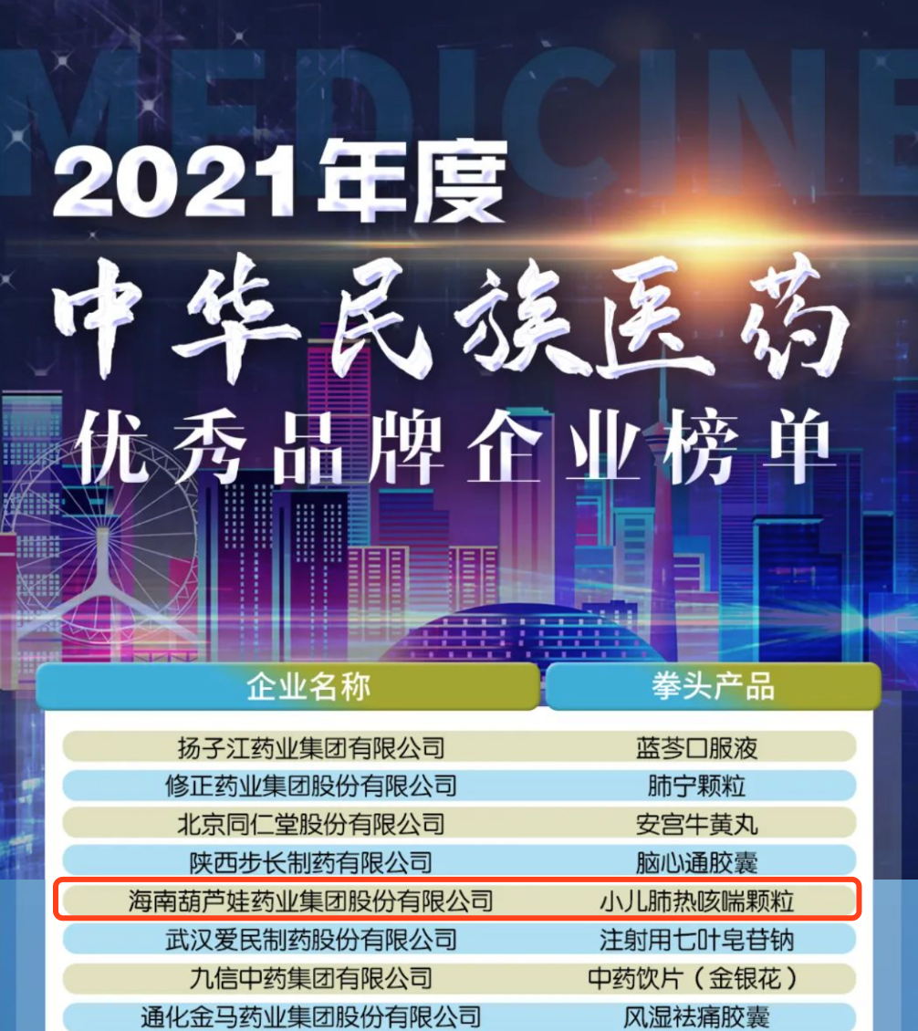 12月29日,全国工商联医药业商会发布了“2021年度中华民族医药优秀品牌企业榜单”,ks凯时药业集团凭借黄金单品小儿肺热咳喘颗粒(4克)实力登榜。